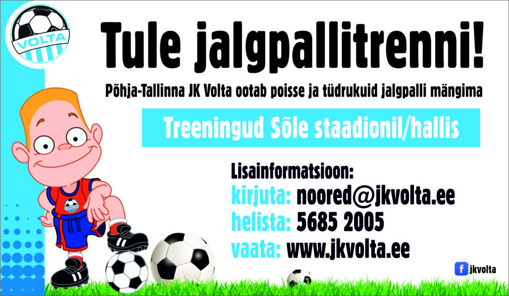 Põhja-Tallinna JK Volta ootab jalgpallist huvitatud poisse ja tüdrukuid alates 8. septembrist meie uutesse treeninggruppidesse. JK Volta treeningud toimuvad Sõle spordikeskuse staadionil, kuhu talvel paigaldatakse hall. Väiksemate laste treeningud toimuvad ka Sõle 40 koolihoone võimlas. JK Volta treeninggrupid, kus on veel vabu kohti: 2016-2018 tüdrukud: esmaspäeviti ja neljapäeviti 16.45-18.00, reedeti 17.00-18.15 (Sõle 40 koolihoone võimla) […]